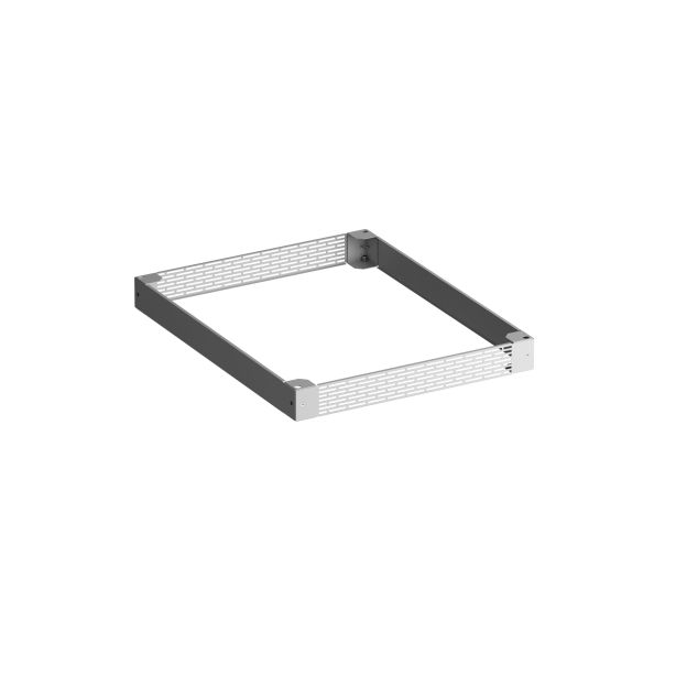 Sockel Höhe 100mm, BxT 600x600mm, grau (RAL 7035), bestehend aus 4 Sockelecken, 2 Sockelblenden geschlossen, 2 Sockelblenden perforiert und 4 Stellfüssen